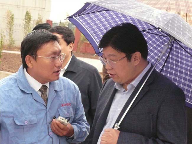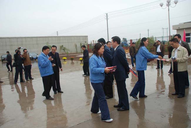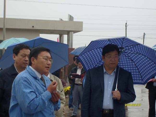 2008年9月27日上午,安陽(yáng)市委書(shū)記張廣智、市長(zhǎng)張笑東和市政協(xié)主席趙微等領(lǐng)導(dǎo)率領(lǐng)市有關(guān)部門一行人冒著霏霏細(xì)雨到我公司考察指導(dǎo)工作。