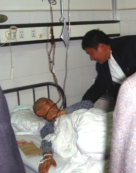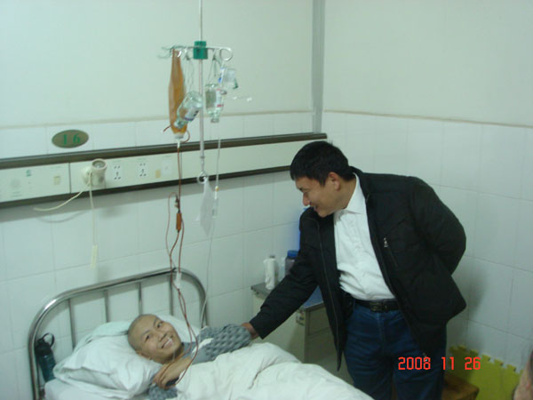 劉小龍,一個20歲的年輕小伙子,曾經(jīng)在公司車間工作。一個風華正茂的年齡一個正是爭取自由的年齡,一個積極上進勤奮好學的小伙子,不幸卻在今年八月中旬被檢查出得了白血病。多么令人可怕的字眼,多么令人討厭的病痛,但不幸確確實實在我們身邊發(fā)生了。病痛一天天在折磨他、在打擊他,拍片、輸血、輸液、化療......,父母的勞累自不必說,巨額醫(yī)療費用也讓這個家庭難以承擔。24日晚全豐公司董事長王志國及工會主席陳志靜攜公司其他成員一行六人專程去醫(yī)院探望了劉小龍及其家人,這些情況全豐公司的領導看在眼里急在心里,看到自己的兄弟在忍受痛苦,領導們的心情非常沉重。