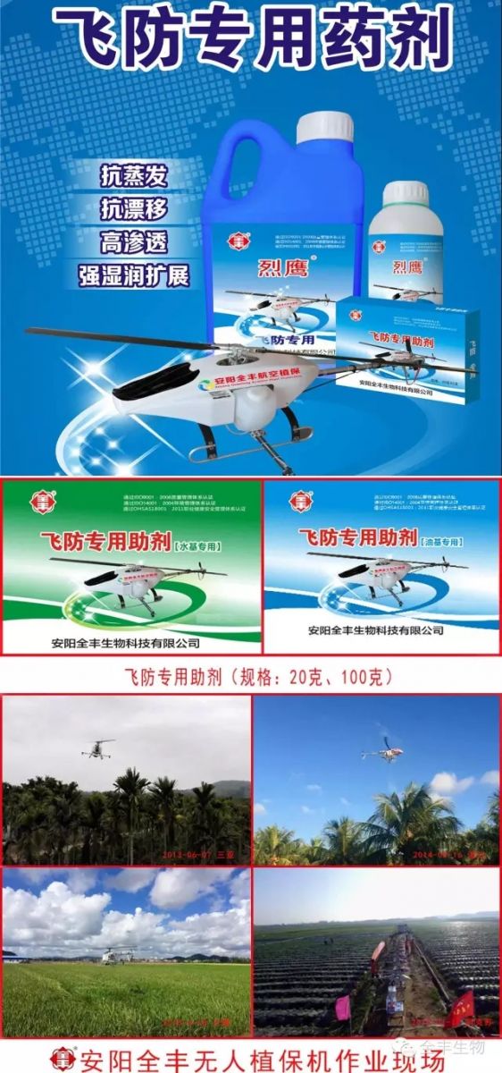 安陽全豐生物科技有限公司飛防專用藥劑及助劑助我國農(nóng)業(yè)現(xiàn)代化及廣大飛防組織早日實現(xiàn)施藥減量化。