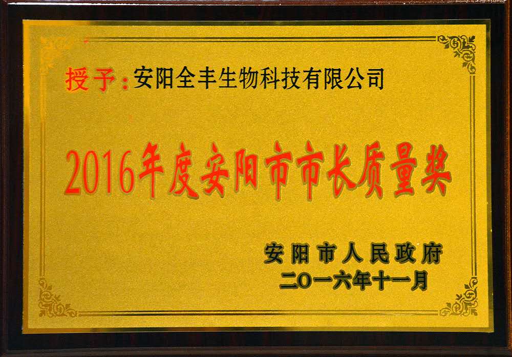 安陽全豐生物科技有限公司喜獲“安陽市市長質量獎”