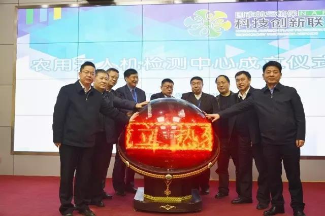 在農(nóng)用無人機檢測中心成立儀式上,陳學庚、蘭玉彬、董洪巖、王鳳樂、魏凱、楊林、呂印譜、駱少明等領(lǐng)導共同參與項目啟動儀式。