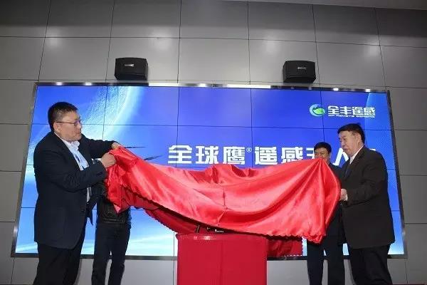 由陳學庚院士、蘭玉彬教授,王志國董事長、黃文江研究員共同為全球鷹遙感無人機揭幕。