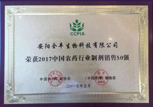 2017年5月10日上午,在江蘇南京召開的第四屆農(nóng)藥行業(yè)經(jīng)濟(jì)運(yùn)行分析會暨農(nóng)藥行業(yè)排行榜發(fā)布會上,中國農(nóng)藥工業(yè)協(xié)會隆重發(fā)布了2017中國農(nóng)藥行業(yè)制劑銷售50強(qiáng)榜單。