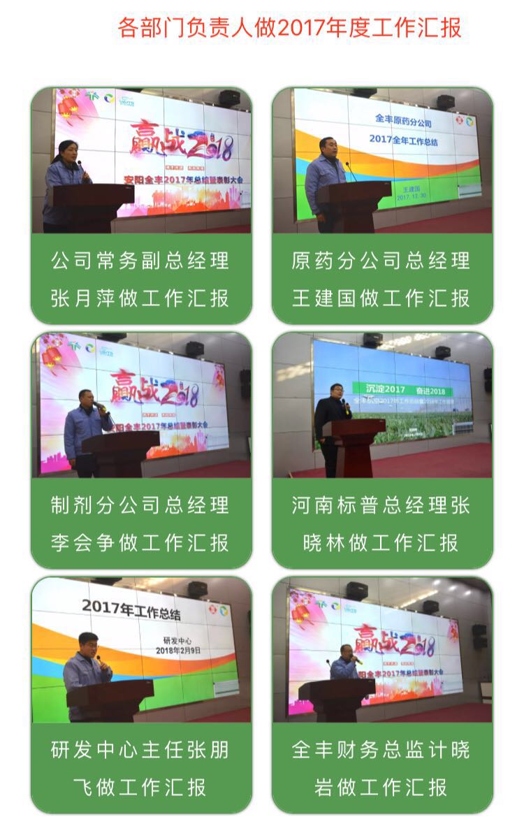 會上各部門負責(zé)人就2017年工作進行了認真總結(jié),并提出2018年工作規(guī)劃和目標,公司董事長、總經(jīng)理王志國做了公司2017年工作報告。王總講到,過去的2017年在所有全豐人的共同努力下,公司取得了一定的工作業(yè)績,成立了院士工作站,被國家農(nóng)業(yè)部確定為國內(nèi)一家航空植保重 點實驗室,并獲得全國五一勞動獎狀。安陽全豐已初步完成農(nóng)業(yè)產(chǎn)業(yè)化布局。依托現(xiàn)有原藥和制劑業(yè)務(wù)板塊,全豐航空和標普農(nóng)業(yè)立足智慧農(nóng)業(yè)五大模塊持續(xù)發(fā)力,力爭做國內(nèi)行業(yè)智慧農(nóng)業(yè)服務(wù)商,并談到全豐未來三至五年的發(fā)展規(guī)劃。