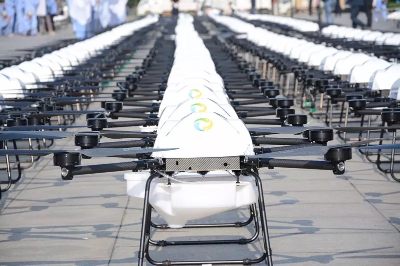 隨后,一行人來到作業(yè)現(xiàn)場,正在進(jìn)行飛防作業(yè)的隊員們接受領(lǐng)導(dǎo)和專家的檢閱。綠油油的麥田上空,全豐自由鷹和全球鷹同時起飛,可實行自主飛行,精準(zhǔn)噴灑,支持遙控器手機(jī)規(guī)劃航線,多種踩點方式!
