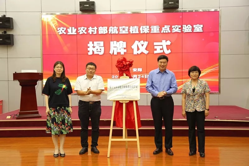 會(huì)議由華南農(nóng)業(yè)大學(xué)博士生導(dǎo)師蘭玉彬教授主持,實(shí)驗(yàn)室主任王志國(guó)致辭。之后全豐公司王志國(guó)董事長(zhǎng)、華南農(nóng)業(yè)大學(xué)蘭玉彬教授、農(nóng)業(yè)農(nóng)村部南京農(nóng)業(yè)機(jī)械化研究所薛新宇研究員和安陽工學(xué)院張玲副校長(zhǎng)代表四家共建單位共同為農(nóng)業(yè)農(nóng)村部航空植保重點(diǎn)實(shí)驗(yàn)室揭牌。