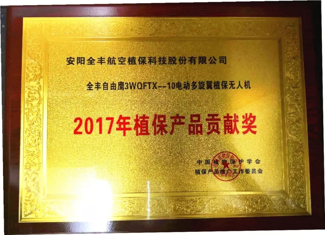 “植保產(chǎn)品貢獻獎”是由中國植保學會植保產(chǎn)品推廣委員會主辦,以推廣優(yōu)質產(chǎn)品、表彰優(yōu)秀個人為目的,從2013年開始已經(jīng)連續(xù)成功主辦了5屆。在本屆評選活動中,安陽全豐航空兩款無人機上榜,這是對全豐航空促進農(nóng)業(yè)機械化進程、確保土壤健康和農(nóng)藥零增長做出貢獻的肯定。
