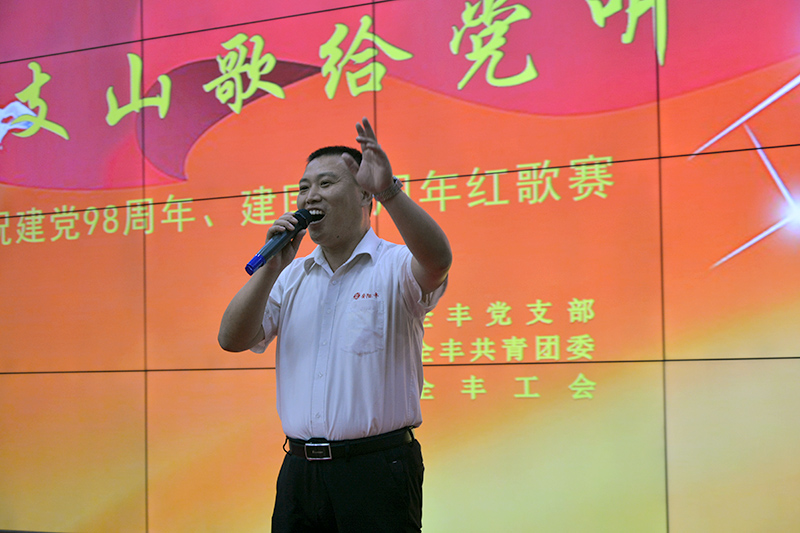 總結(jié)表彰會(huì)結(jié)束后,在全體人員高唱國歌《義勇軍進(jìn)行曲》的嘹亮歌聲中,慶祝建黨九十八周年紅歌賽拉開了下半場的序幕。此次紅歌賽分為集體賽和個(gè)人賽,共有七支參賽隊(duì)伍和四名獨(dú)唱分別角逐一二三等獎(jiǎng)。從歌曲內(nèi)容、服裝隊(duì)形、演唱水平等方面進(jìn)行綜合評比打分。經(jīng)過激烈角逐,制劑分公司合唱《保衛(wèi)黃河》榮獲集體一等獎(jiǎng),航空和原藥分獲二三等獎(jiǎng)。制劑分公司袁明演唱的《祖國慈祥的母親》榮獲個(gè)人賽第 一名,仝慧和周俊峰分獲二三名。