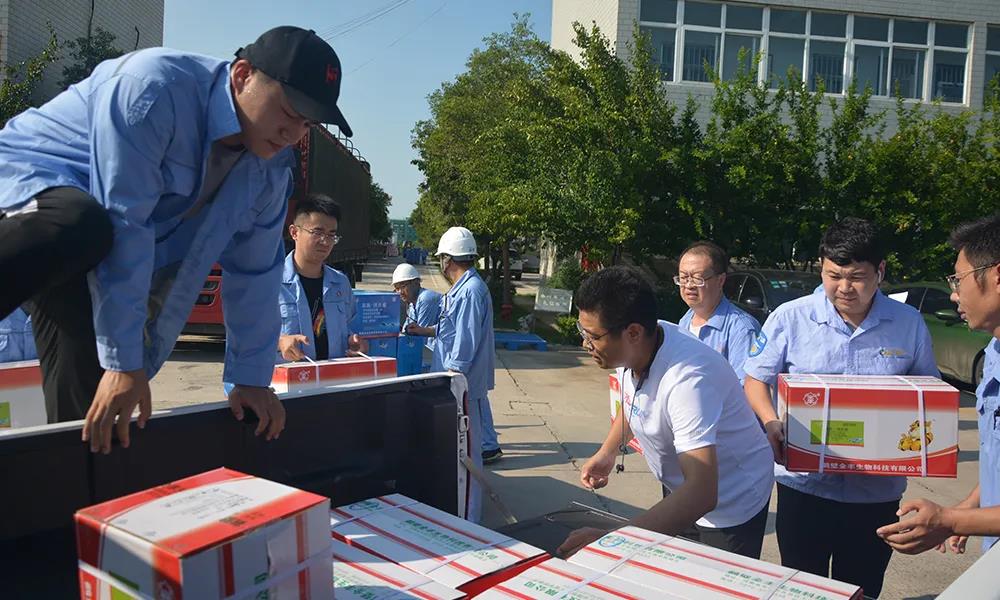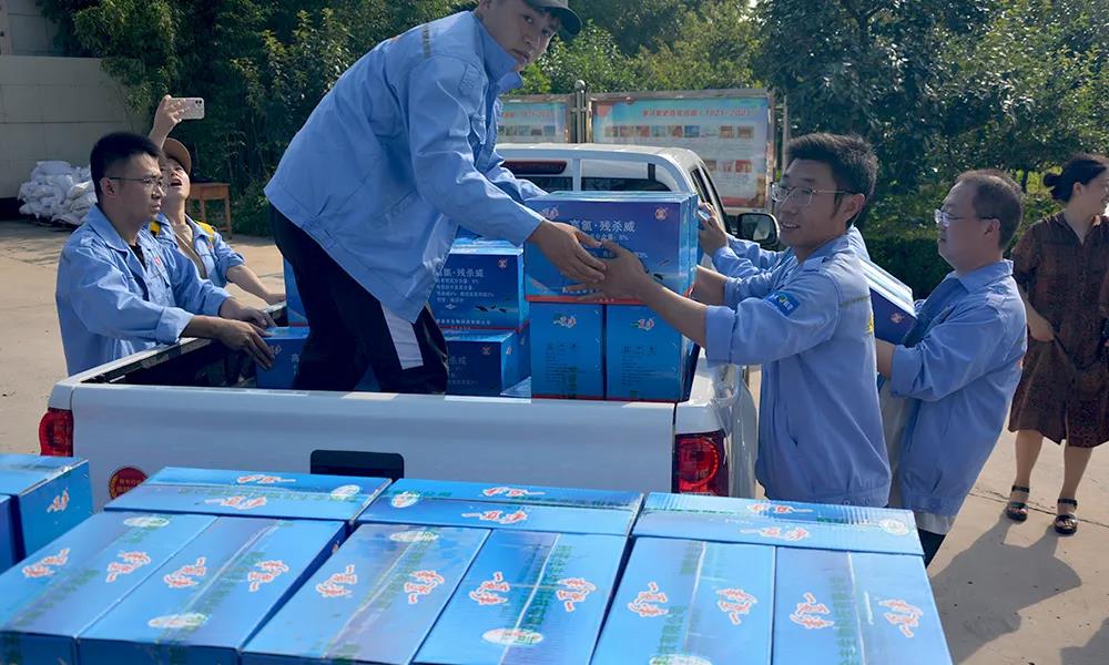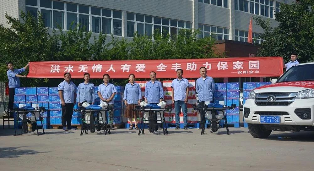 安陽全豐在自身蒙受財產(chǎn)損失的情況下,不忘企業(yè)使命,勇于承擔(dān)社會責(zé)任,心系受災(zāi)地區(qū),開展生產(chǎn)自救的同時,公司董事長、總經(jīng)理王志國第一時間帶領(lǐng)員工積極籌措物資,緊急行動起來,聯(lián)系湯陰縣、安陽縣、北關(guān)區(qū)、文峰區(qū)當(dāng)?shù)丶t十字會,向受災(zāi)嚴(yán)重地區(qū)捐贈施必達(dá)、金處方、S誘抗素、“蚊蠅一夏凈”等物資將近50余萬元,并免費(fèi)提供配套的無人機(jī)消殺服務(wù)。